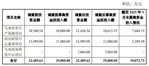 截至2025年9月30日,“馬來西亞生產(chǎn)基地項(xiàng)目”已使用募集資金7,684.15萬元,募集資金使用進(jìn)度為72.39%。
